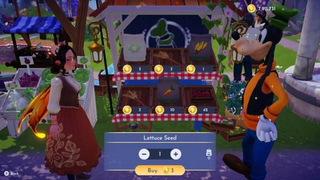 レタスは栽培されていますレタスの種、あなたはであるグーフィーの屋台から購入できます平和な牧草地。レタスはすぐに成長し、植え付けから収穫まで3分しかかかりません。レタスの種子にはそれぞれ3つの星のコインがかかりますが、完全に栽培されたレタスは12個の星コインで購入できます。