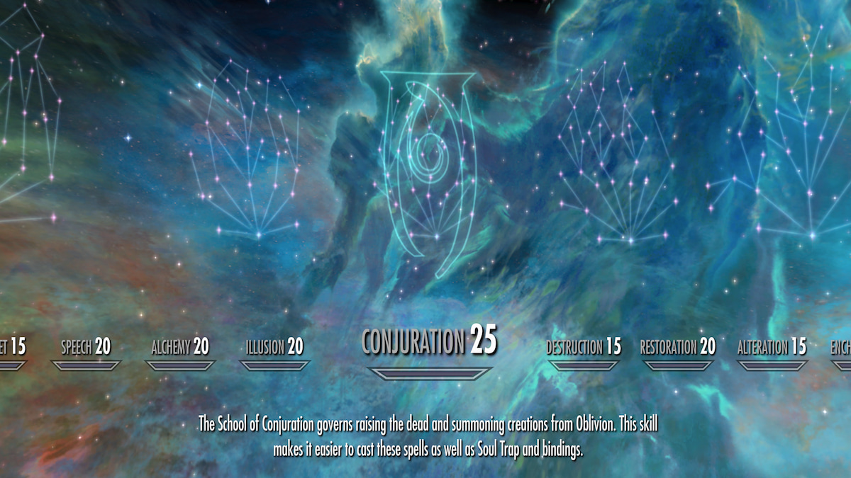 ネクロマンサーは、死んだものを生き返らせます。それはまさに彼らがしていることです。 Atronachsは最初の数人の敵を倒すのに役立ちますが、彼らはあなたの焦点ではありません。呪文と特典のネクロマンシーラインに焦点を合わせることで、より大きく、より重い、長持ちするゾンビになります。これがどれほど役に立つかを話す必要はありません。特に、あなたがコンジュアレーションを最大限に活用し、2つの召喚状を持つことに到達するとき。