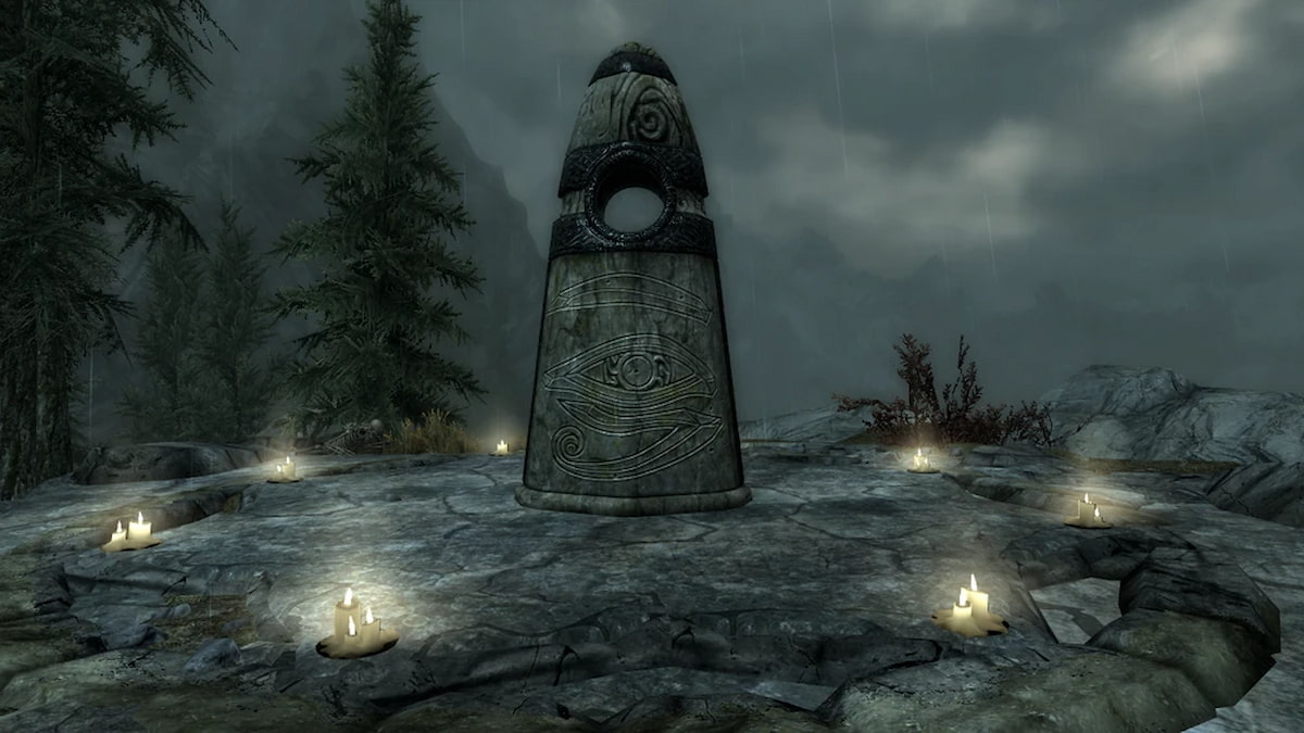 儀式の石は、ホワイトルンとバルテムの塔の間にあるホワイトルンの東にあります。すでにいくつかのネクロマンサーのローブを探しているなら、そこに向かって1つの石で2つのカラスを殺すことができます。通常、ギアを使用してアクティブ化できる場所を守る2人のネクロマンサーがいます。