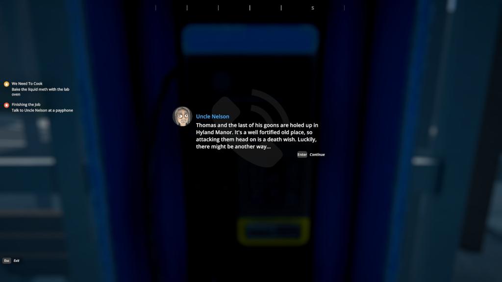 彼は自己紹介し、あなたのRVについて何か面白いことを明らかにします(ここにはネタバレはありません)。その後、彼はあなたに2つの申し出をします:彼の停戦を受け入れるか、戦争を宣言します。あなたが彼の停戦を受けるならば、戦争はありません、そしてあなたは安全です。しかし、あなたは実際に彼のディーラーになるでしょう。タイムリーに一定量の薬物を彼に供給する必要があります。彼は、彼があなたに市場レートよりも少ない支払いをするだろうと公然と言っています。