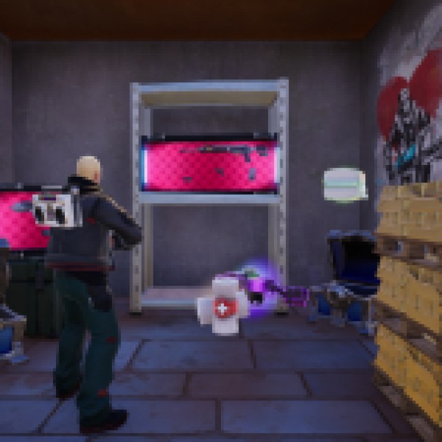 武器バンカーが地図上にある場所がわかったので、バンカー内の武器ケースを見つけることができます。それらは、紫色の輝きを与える武器が展示されている容器として登場します。武器のケースと交流するだけで、それを略奪します。