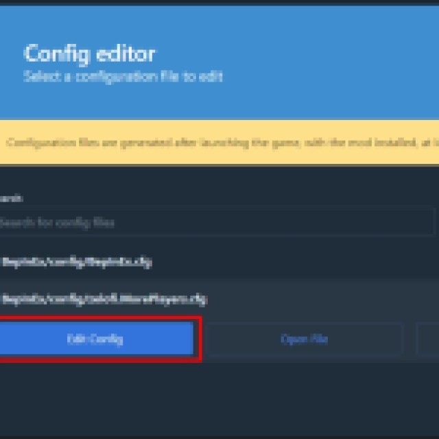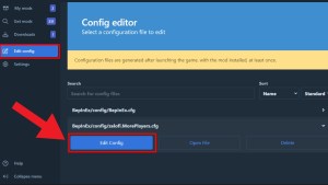 - 次のウィンドウで、クリックします「Bepinex/config/zelofi.moreplayers.cfg」そして、クリックします「構成を編集します。」