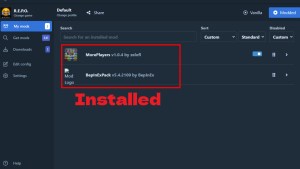 - クリックしてください「私の改造」左のツールバーには、Bepinexpack modとともに、リスト内のMorePlayers modが表示されます。