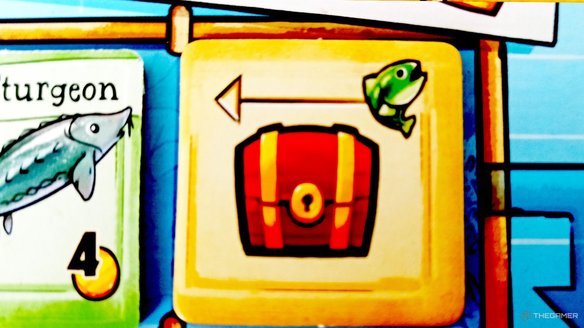 トレジャーチェストタイルの左側のスロットで魚を捕まえた場合、トレジャーチェストタイルを捨てて、アイテムカードを取得します。