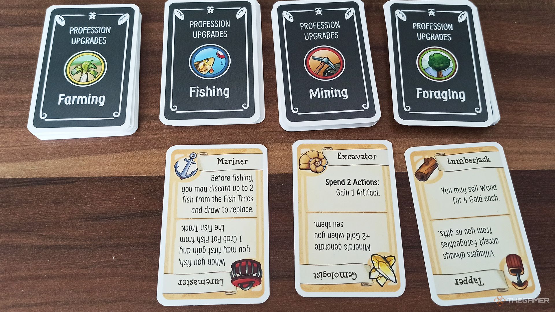職業のアップグレードは取引できず、各プレーヤーは最大2つのプレイヤーを保持できます。両面カードを取得する場合は、配置する前に使用する側を決定する必要があります。ギフト能力のあるカードは、シーズンカードにギフトアイコンが表示されるとトリガーされます。