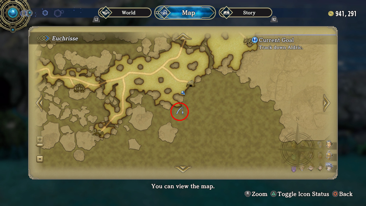 - そして、海辺の洞窟の南西にあるオーバーワールドの釣りスポット。