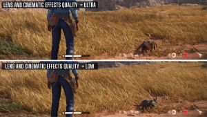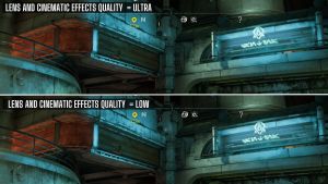 スターウォーズの無法者のぼかしを減らすには、主に「」の価値を減らす必要があります。レンズと映画の効果の品質」で高度なグラフィックスグラフィック設定のセクション。