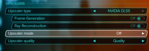 - 使用する代わりにDLSS 品質またはバランスが取れています、使用してみてくださいdlaaの値を設定しますUpscalerモードにオフとDLSSが有効になっています
