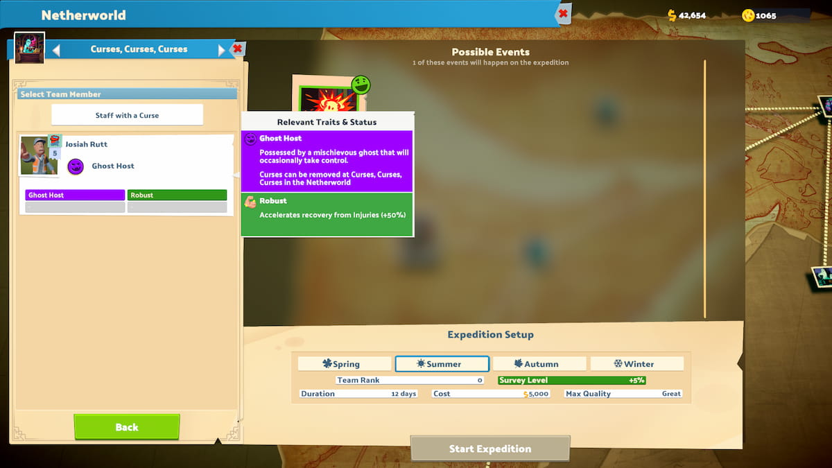 遠征は、あなたの博物館に展示する奇妙で素晴らしいアイテムを明らかにする唯一の方法です。残念ながら、より危険な旅のいくつかは、スタッフが神秘的な呪いで戻ってくる可能性があります。呪いは、呪いが解除されるまで、スタッフが仕事をするのを止めたり、仕事でひどくしたりすることができます。一部の呪いはあなたの労働者をカエルや他の生き物に変えますが、他の人はそれらを傷つけたり所有したりします。