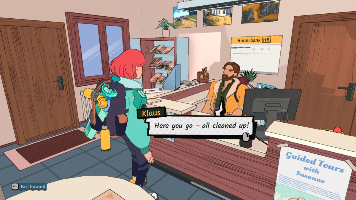 クラウスとの関係を上げるには、ダンジョンを完了したり、風光明媚な景色を眺めながら時間を過ごした後、彼と一緒に夜を過ごす必要があります。ゲームを進めることにより、すでに彼との関係をレベル1に平準化する必要があります。つまり、レベル2に上げるには夕食をとる必要があり、非常に迅速かつ簡単になります。観光センターで彼と話すと、プロセスを開始します。