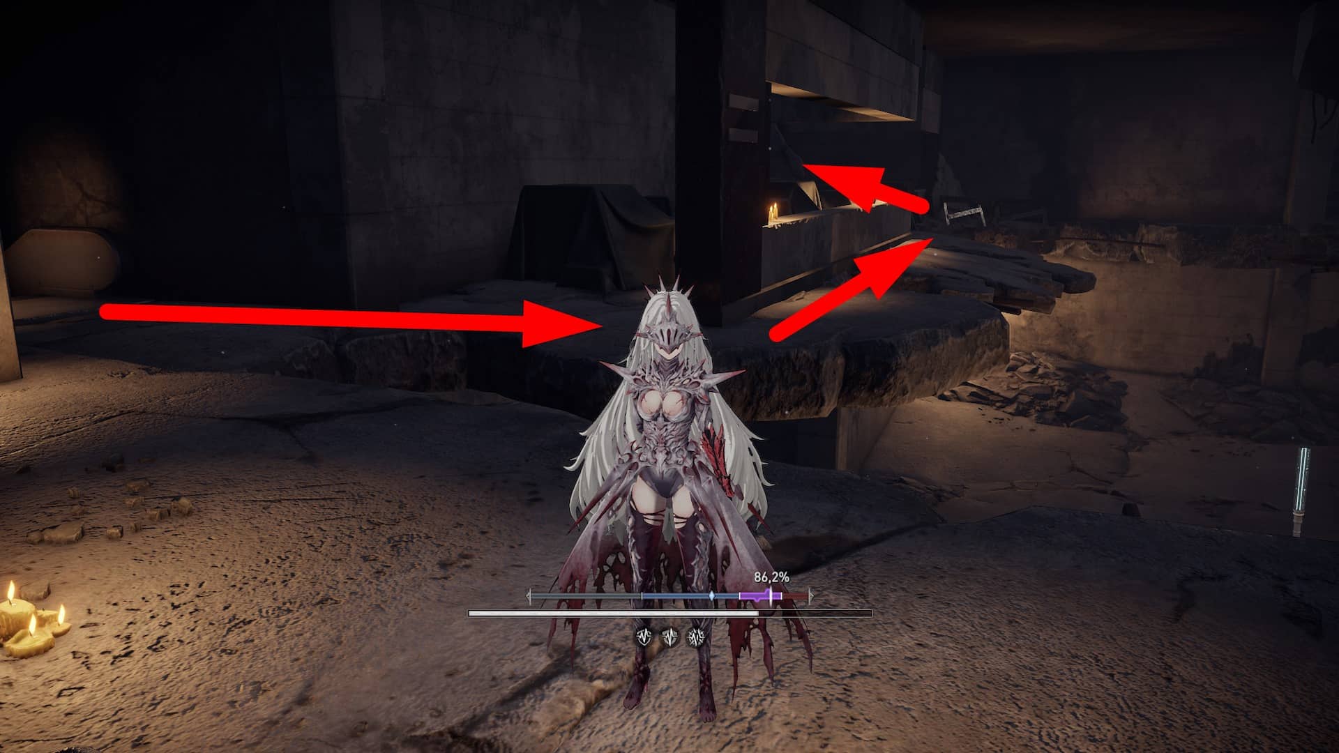 に到達するために枯れた森AIの制限では、まず、テレポートする必要がありますハイストリートブランチ内部沈没した都市オーバーグラウンド - 浸水した通りエリア。次に、階段ブランチのすぐ隣で前進します上階の左側にくっつく。パスは上の画像に示されています。道を飛び越えるために必要なギャップがあります。