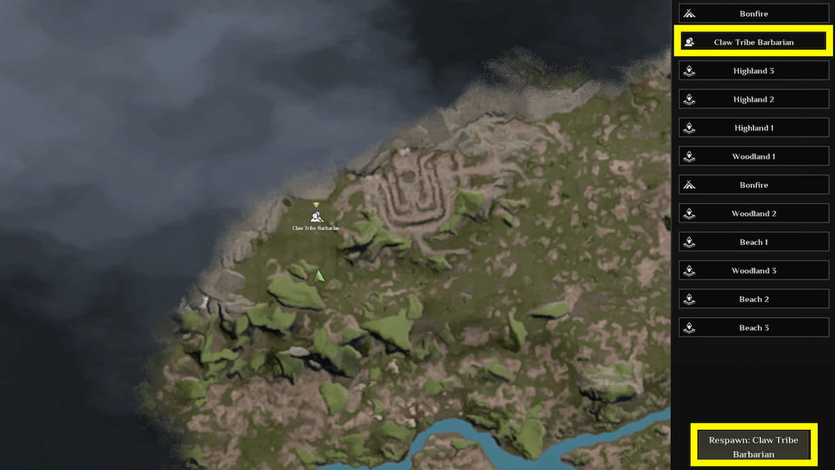 あなたが死ぬとき、あなたは近くの場所、キャンプファイヤー、またはbonき火でリスポーンするオプションがあります。代わりに、部族のいずれか(死の場所に近いほど良い)を選択し、それらのようにリスポーンします。