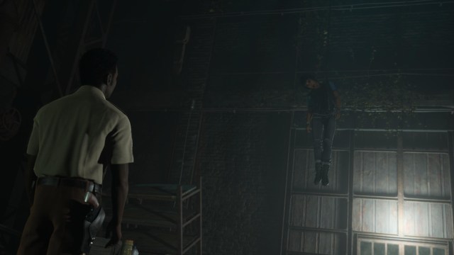 次のシーンでは、サムが映画の乗組員を嵐の排水溝を検索する際に、サムをコントロールします。カメラを使用して、フランクストーンから身を守ります彼が現れたとき、さもなければサムが殺されます。サムとして嵐の排水溝を探索している間、棚の上のマントルはオレンジ色の光で照らされています救助を待っている負傷したハイメを見つけてください。 aもありますrel途中で、それもそれを手に入れます。カメラを用意して、ハイメに近づくとフランクストーンをかわしてください。