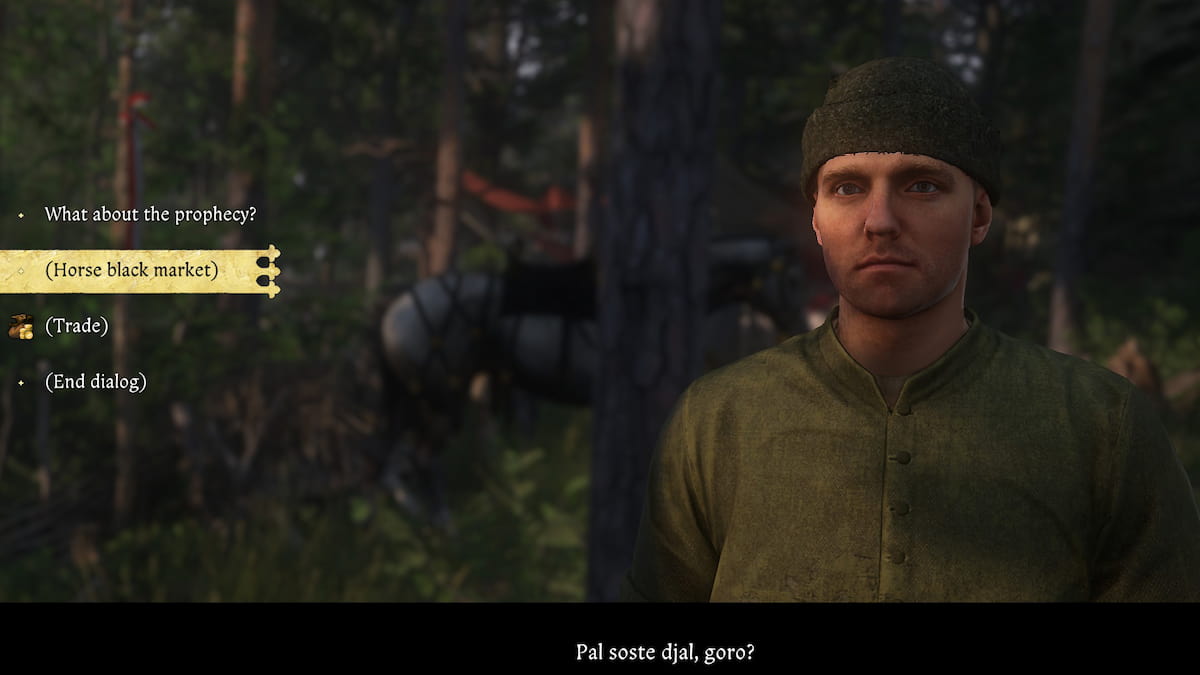 あるいは、馬を売りたくないし、代わりに信頼できる仲間として馬を維持したい場合は、「」を選択できます。取得する」ミコライの馬の闇市場メニューの下でのオプション。彼はあなたがそれを手配するのを助けることができると言っていますが、あなたは多額の料金を支払う必要があります。