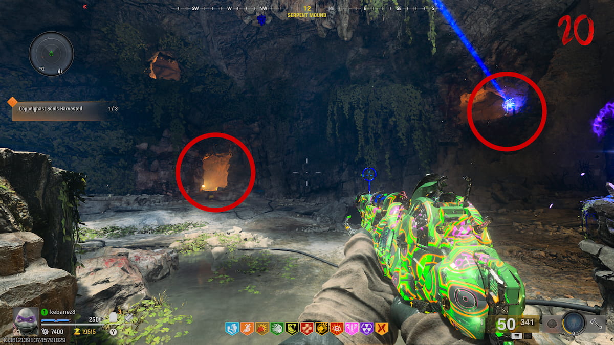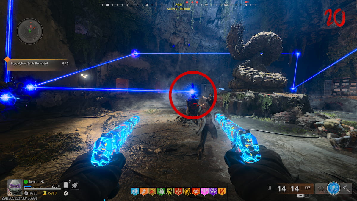 次に、aを実行しますクリスタルへの近接攻撃、ドッペルギャストで産卵します。それを倒して、次のBO6ゾンビを粉砕したベールリフレクターパズルに進みます。