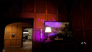 ピアノのメモを自分で見つけるには、ピアノの近くのテーブルの黒い光を拾う必要があります。この小さなデバイスは、ランプ、暖炉、絵画の近く、椅子の横にある壁の上にチョークされたテキストを明らかにする暗い紫色の光を発射します。