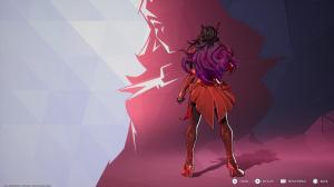 これは、カオスガウンの肌がさまざまな角度からどのように見えるかです。それは非常に詳細で、彼女の髪は端に紫色のアクセントを特徴としています。