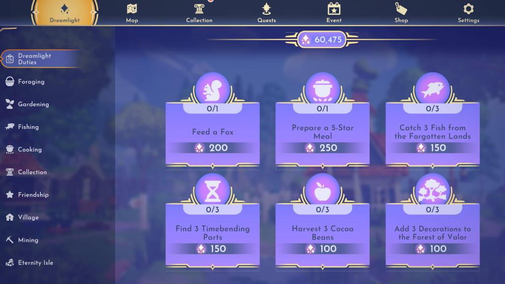 ディズニードリームライトバレーの領域のロックを解除する前に、さまざまな村のタスクを完了することでドリームライトを収集する必要があります。これらのタスクは、Dreamlight Dutiesメニューを介して見つけることができます。彼らは、餌やふれあいの仲間から、村の周りに料理、鉱業、装飾の配置に至るまでさまざまです。