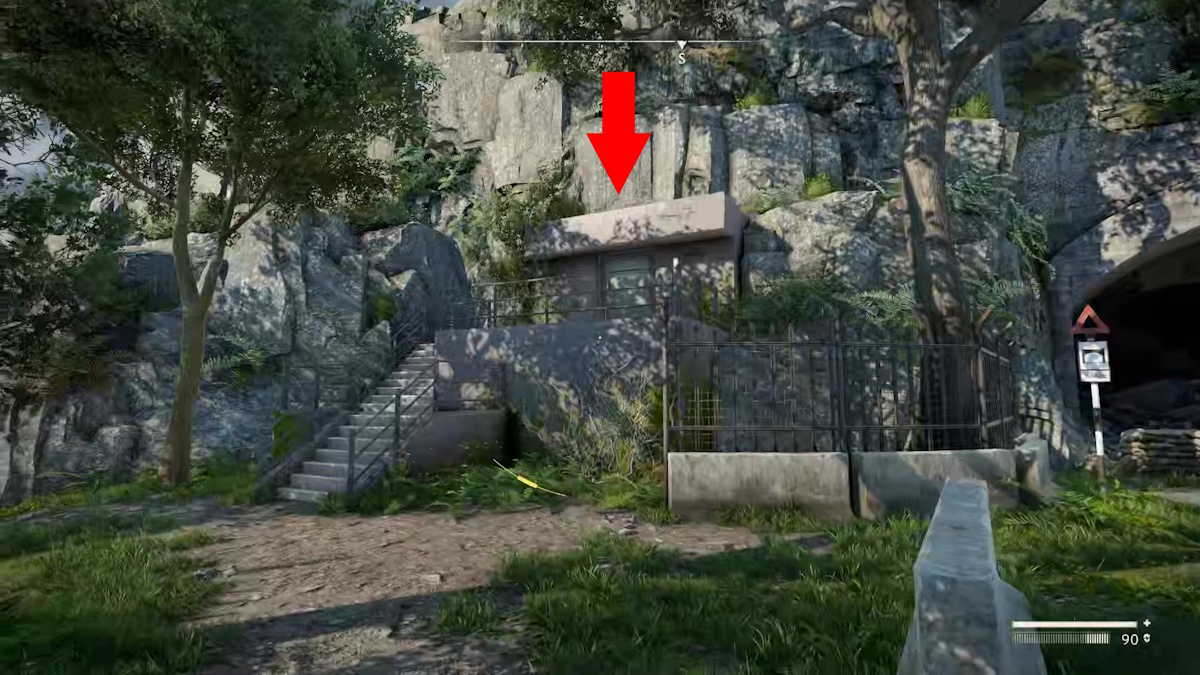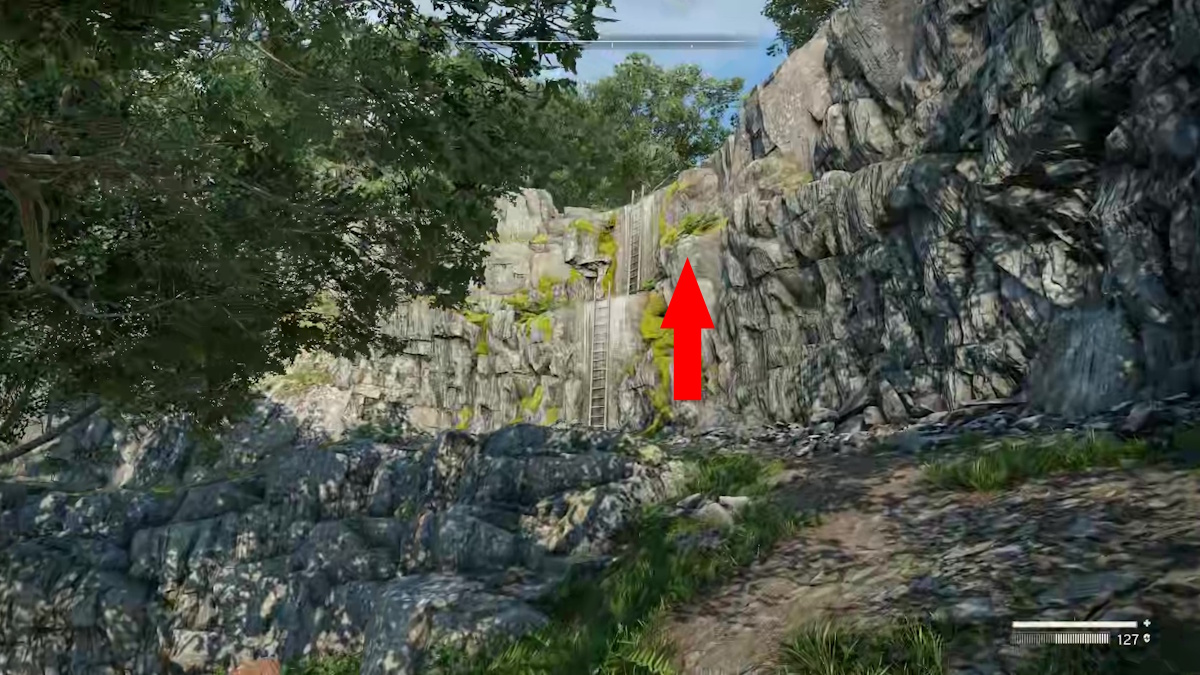 岩だらけの壁を右に抱きしめ、西に進みます。最終的には、2つのはしごにつながる短い丘を歩き始めます。はしごを道路に連れて行きます閉じたトンネルに着くまで盗賊を避けながら南に向かう。