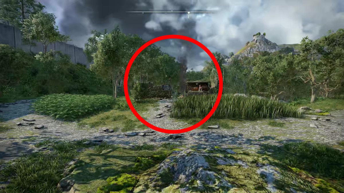 バンカーを離れて旅行します道に沿って北東、丘を降ります。小さな避難所から煙が晴れているのを見つけるまで歩きます。