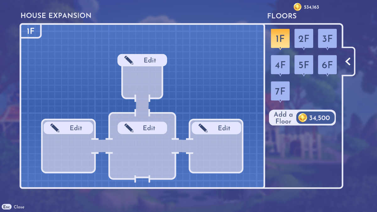 その後、2回拡大することができ、2回目は1,000個の星のコインと3回目のコストが2,000個の星コインになります。最大サイズにアップグレードすると、すべての追加フロアには、オリジナルと同じサイズの中央部屋があります。