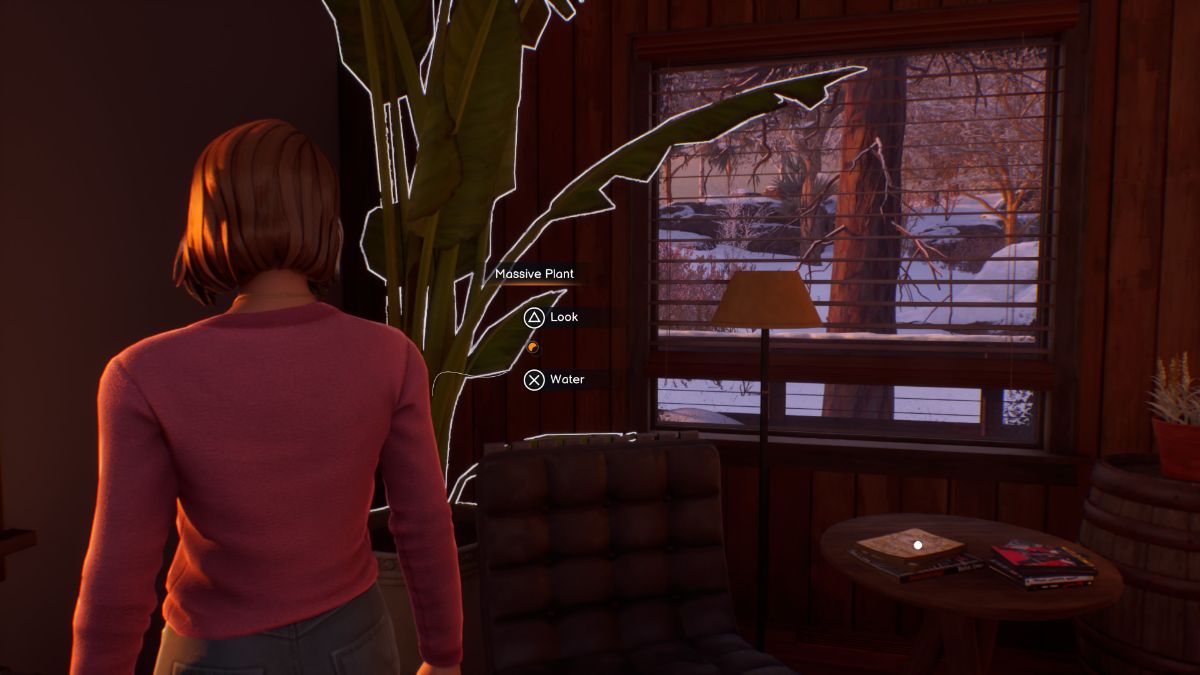 また、第2章Penumbraでは、彼女の家にマックスの植物に水をやる機会があります。章の最後にある写真完成シーンに向かいます。猫や証拠に気を取られないでください。代わりに、部屋の左側の隅にある窓や詩の本の隣にある巨大な植物に行きます。
