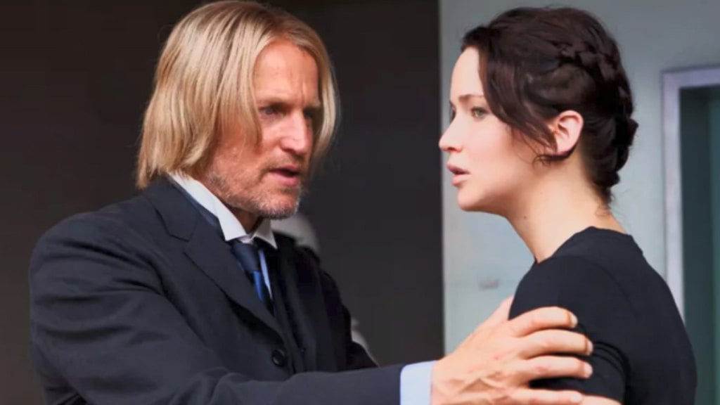 ヘイミッチの物語は、16歳の誕生日のように、即座の悲劇から始まります。彼は、選ばれたトリビュートの1人が逃げようとして殺された後、とにかくゲームに追い込まれることを避けます。余波で、彼のガールフレンド、レノア・ダブは、犠牲者の悲しむ母親を慰めるために介入します。ヘイミッチが平和維持軍からレノアを守るために介入すると、彼は倒れた賛辞の場所で違法に刈り取られています。
