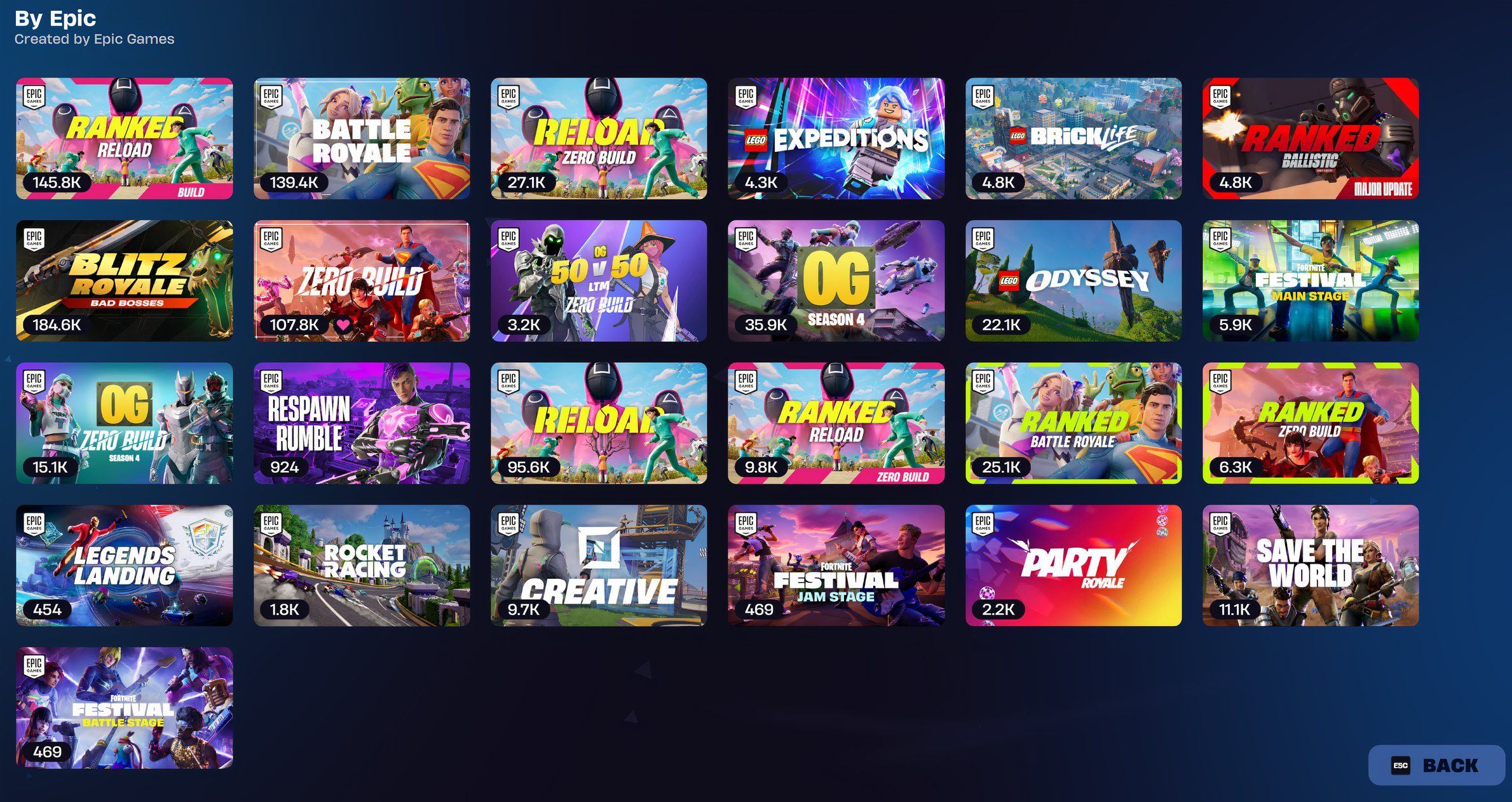 さまざまな叙事詩が作成されたFortniteモードのリスト。