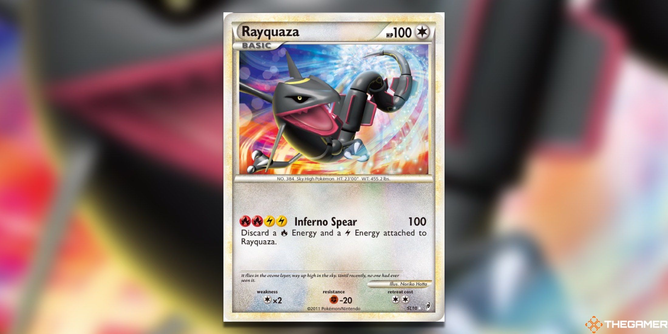 2011年までさらに2年前にジャンプして、Call of Legendsがあります。これは、明るいきらめく逆ホロスタイルに焦点を当てていて、ポケモンに焦点を当てたシンプルでエレガントなデザインを選択しました。 Call of Legendsの信じられないほど高価なRayquazaは、セットで最も価値のある視覚的に魅力的なカードの1つとして際立っています。