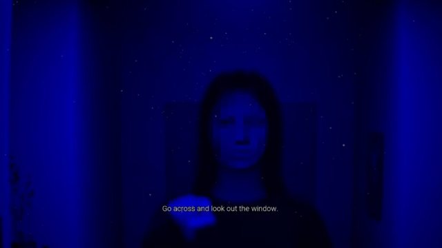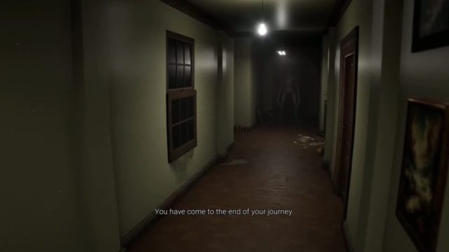 少女は自分自身を見せていますが、彼女の顔はぼやけています。一方、クリーチャー(輝く白い目と広い不自然な口で恐ろしいものの)は、私たちの匿名のヒロインよりも正直に見えます。彼女は、あなたが右のドアに入るのを止めるために彼女の限られた力を使って、あなたが左に行くことを望んでいます。窓の外では、新しいサイクルに入ると、クリーチャーが近づきます。声はあなたに彼女を信頼しないように言います。吸血鬼のように、クリーチャーは招待されたいと思っており、サイクルを破り、この時点まで聴いていた女性を信頼しないように警告します。これがあなたの道を変えることができる場所です。左に進んで(女の子に耳を傾ける)か、右に進み(クリーチャーを聞く)ことができます。