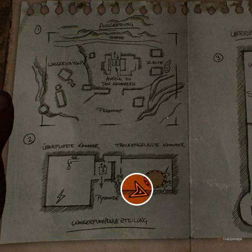 | この失われたアーティファクトはにあります地図の南東部の道路の南。実際、それはあなたが最初にGizehに到着し、あなたのカメラで丘を登って青いテントの写真を撮ったエリアです。あなたがこの丘から南に向かうなら、あなたはl石の間に小さな穴を見つけます。ライターを使用してください穴の中のわらに点火します。次に、穴を介してcraいて、スケルトンの隣のアーティファクトを見つけます。 |