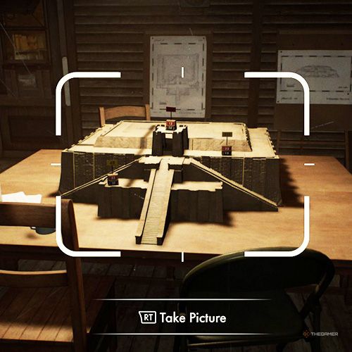 ジーナを救出した後、西に建物に入ります。内部のテーブルには、Zigguratモデルがあります。メモを取得するために写真を撮ってください。 | ||