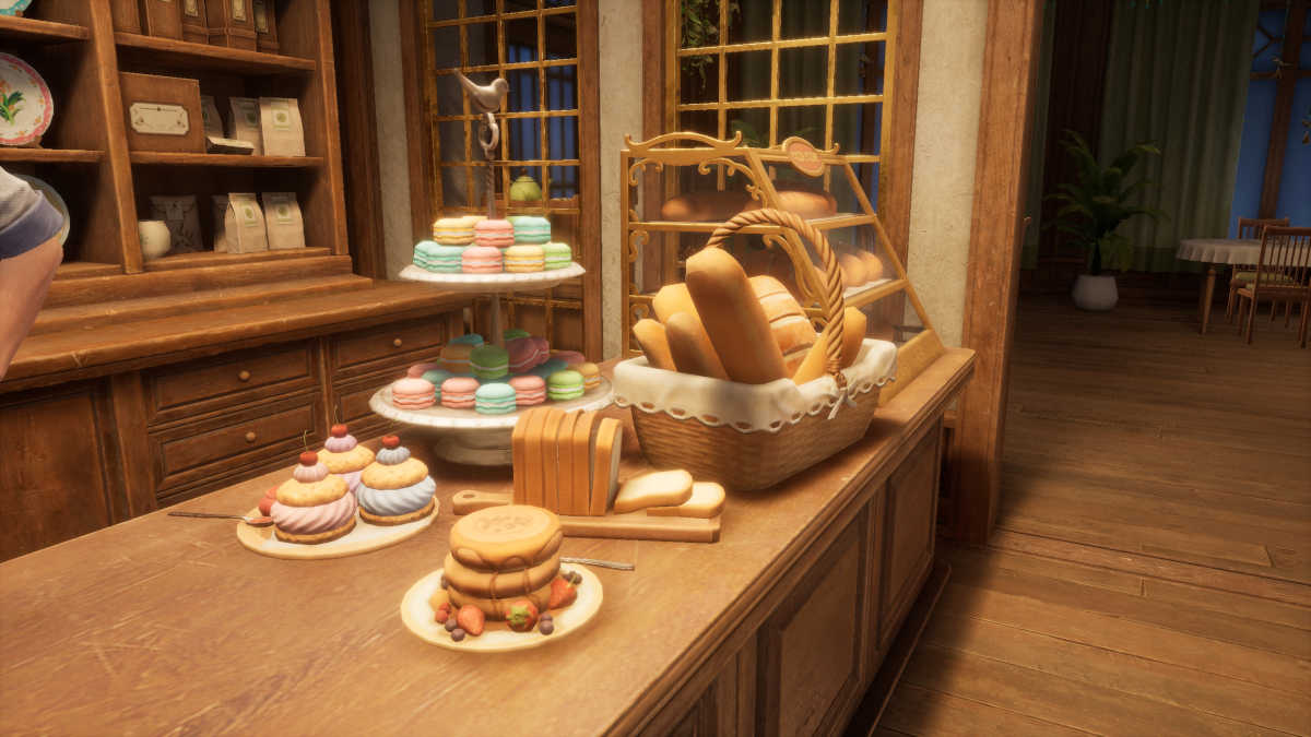 あなたが写真を撮ったら、あなたがレイとウィングの中に入ってきたことを願っています#5。この画像のターゲットは、部屋の途中でカウンターの上にレイアウトされたパンとペストリーです。