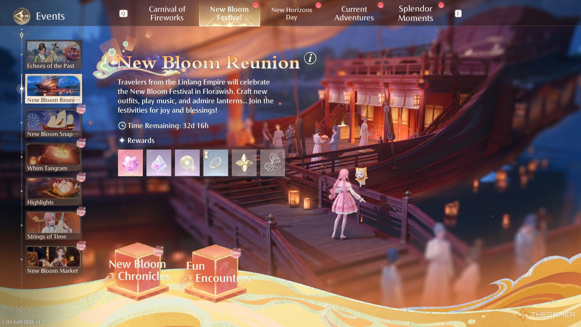 イベントの排他的なクエストラインに加えて、ポップアップする小さなクエスト限られた時間。それらは分離されています新しいブルームクロニクルと楽しい出会い、どちらも同様の報酬を提供しますが。