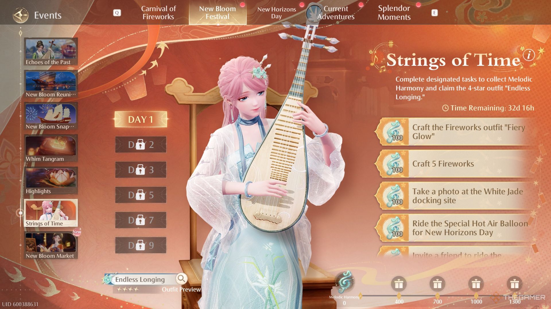 メロディックハーモニーを獲得すると、できます新しい報酬のロックを解除します無限の憧れの衣装のために。以下は、イベント期間中にタスクを完了するための報酬です。