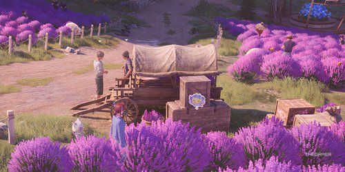| 素敵なlavenfringeフィールド | 染料ワークショップに向かって橋を渡るときに、最初のワゴンの後ろの箱に。 |