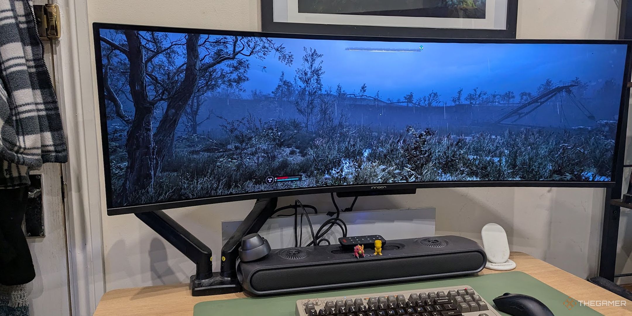 32:9のアスペクト比に行くことは大きなジャンプであり、ゲーム構成ファイルとサードパーティのツールを無限にいじくり回して、すべてのウィンドウを順番に取得しますが、マルチモニターのセットアップに戻ることを考えたことはありません。ゲームはこれまで以上に没入感があり、この部屋をすべて1つの画面に広げることで、作業がはるかに効率的になりました。たとえそれが私にもっと多くのタブを1つのブラウザウィンドウに詰め込む機会を与えてくれたとしても。