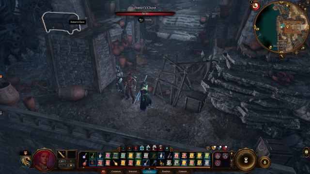 胸が入っている古い、崩壊しつつある建物を見つけたら、部屋の後ろに向かい、見上げます。ポーターの胸と呼ばれるロックされた胸を含む隆起したセクションがあります。セクションはアクセスするのが少し難しいです。シャドウステップスペルが機能するか、胸への道をクリアするために約20のurを個別に破壊することができます。そこに飛び込むことができる高強度の統計キャラクターも最適です。その後、胸を拾うか、器用さベースのキャラクターに胸を投げてロックを解除します。