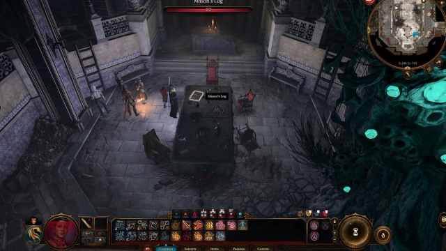 レイスを倒し、元のダイニングホールのように見えるものに進みます。部屋の中央にある大きな長方形のテーブルには、メイソンのログ。このログを読むことは、セルナイト抵抗を調査する最後のステップです。
