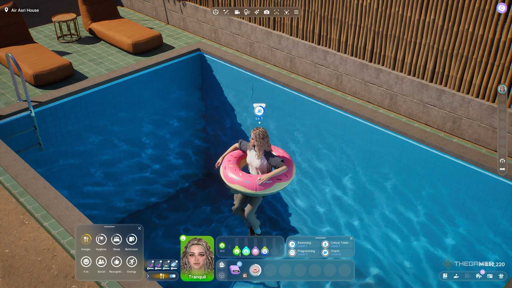 お勧めしますプールにチューブを置きます。あなたのキャラクターはそれでリラックスした気分になり、それはエネルギーを排出しません。