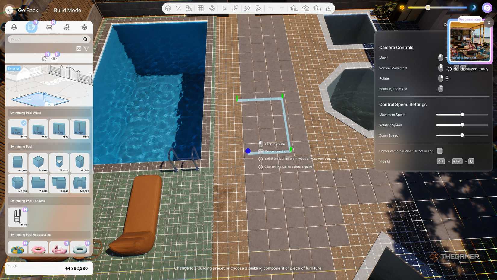 あなたはいくつかを見つけますここのプールの壁、それを選択することができるかどうかを選択できます。ある場所から別の場所に行をドラッグすることにより、すべての境界を閉じます、そしてあなたのスイミングプールは準備ができています。あなたもできます塗料と照明を追加します見栄えを良くするために。