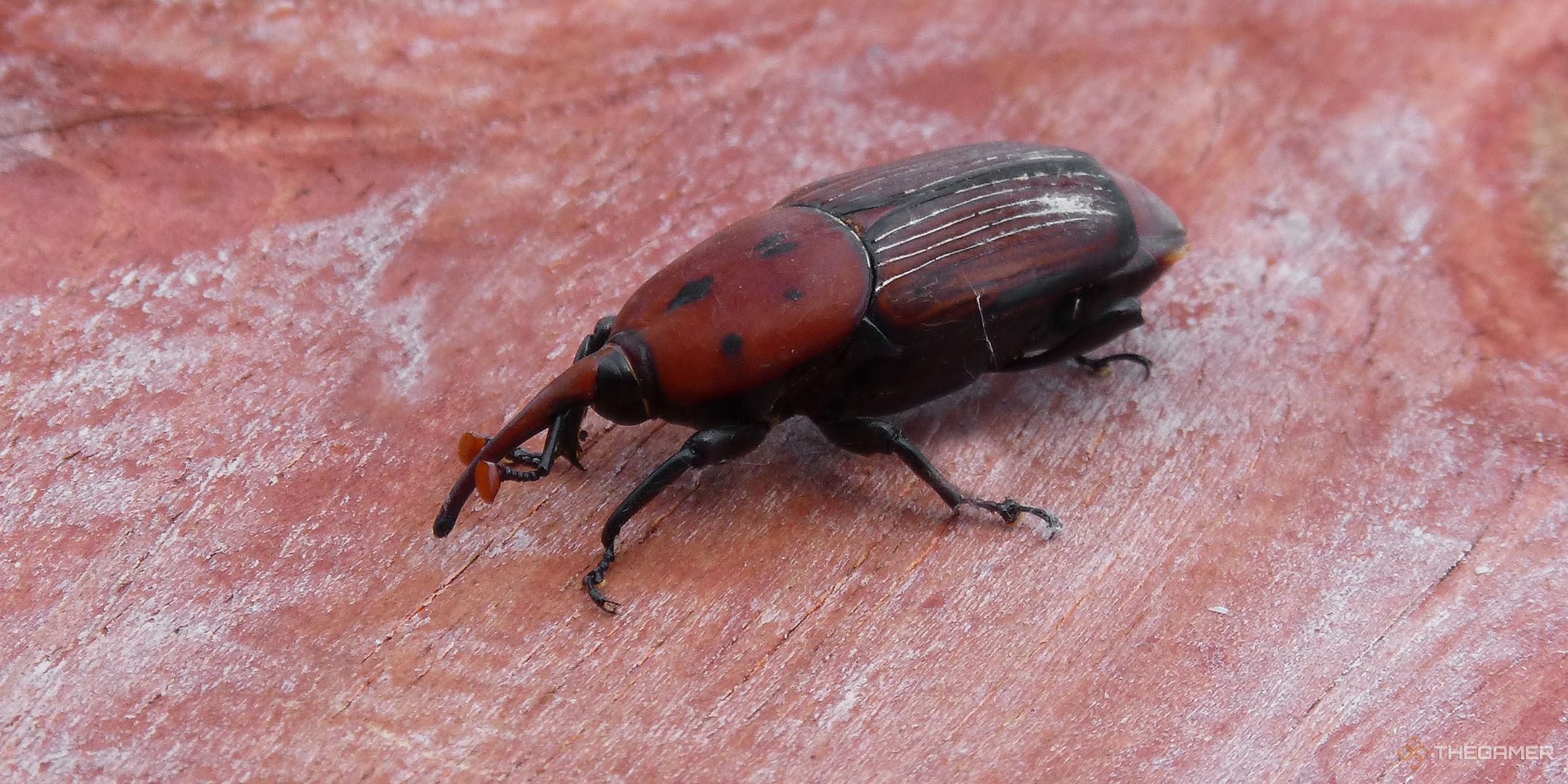 巨大なヤシゾウムシはフロリダで発見され、深い赤と黒の色の模様を持っています。私は主にゾウムシの変種がもっと欲しいだけですが、これらは害虫とみなされているため、葉の家を食べようとするかわいい小さなゾウムシの邪悪でエモな対応物になる可能性があります。