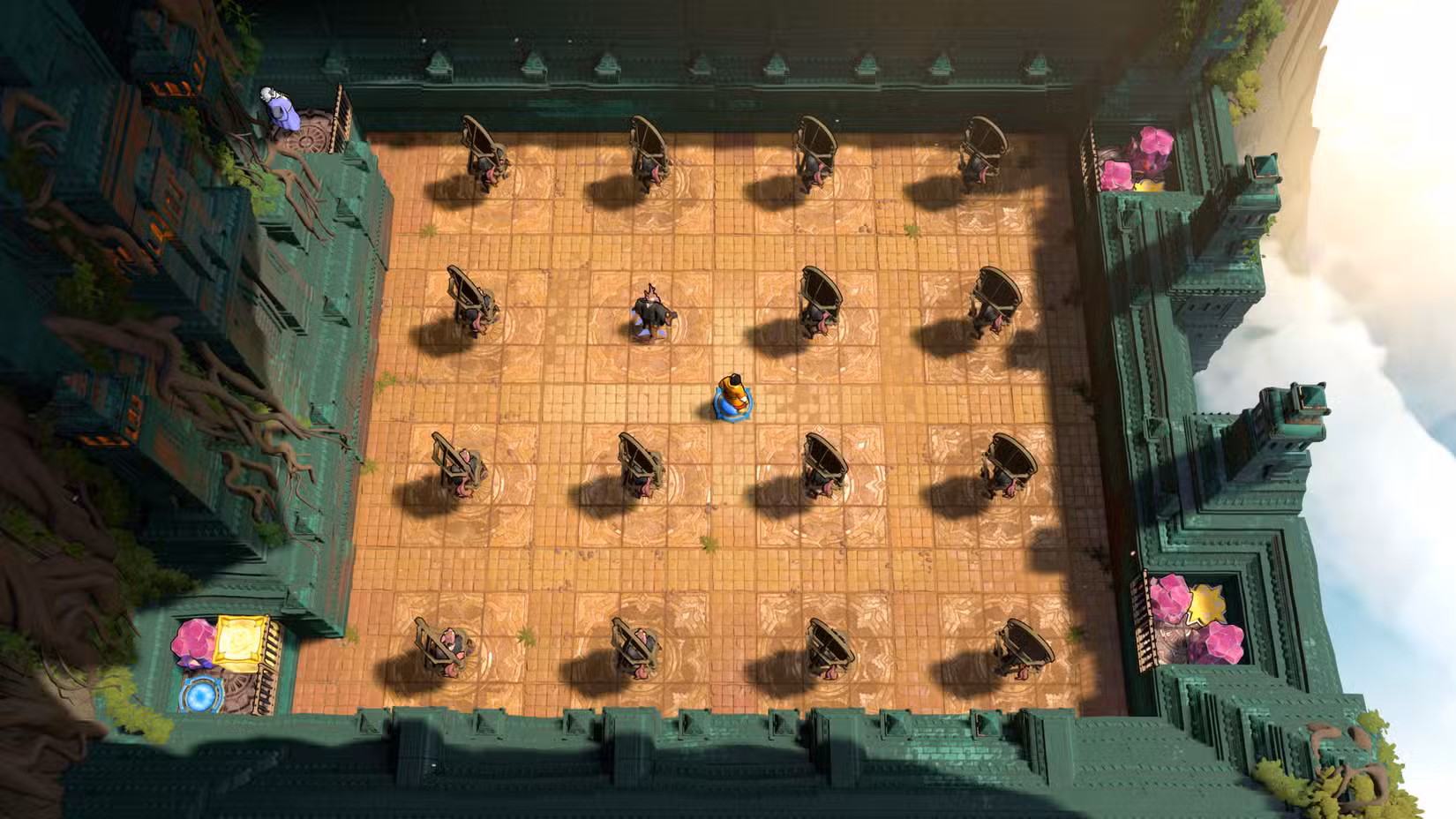 北にはダンジョンズ & ドラゴンズにインスピレーションを得たヒーローの世界があり、パズルごとに、ユニークな能力を持つ異なるキャラクターになります。ファイターは物体を押し、ローグは引っ張り、ウィザードはテレポートすることができます。キャラクターも常に自分の能力を使用するため、興味深いゲームプレイ状況が生まれます。たとえば、悪党は常に横にある物体を引っ張るので、誤ってあなたを罠にはめる可能性があります。ただし、心配しないでください。元の軌道に戻るために、好きなだけ操作を元に戻すことができます。
