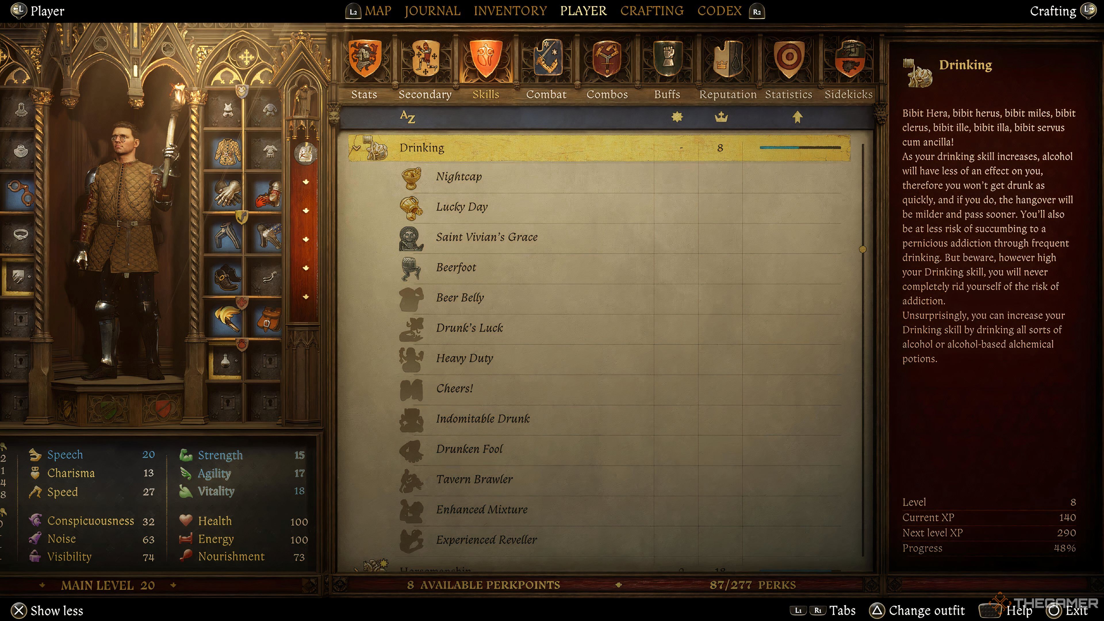 単に、あなたは飲酒によってあなたの飲酒の統計を増やします。無理をしないように注意する必要があります。ゲームの飲酒スキルは次のとおりです。
