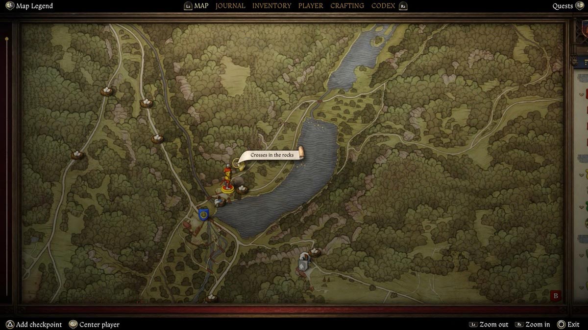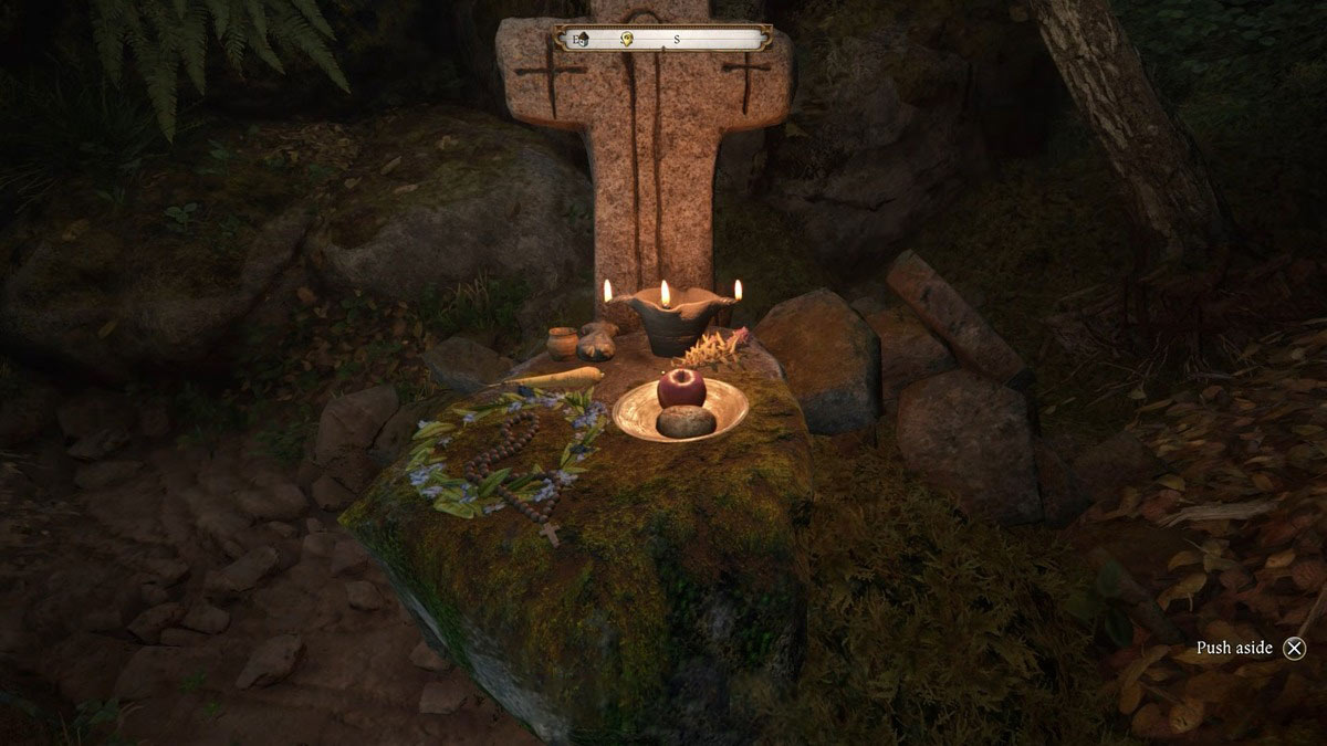 十字架を見つけたら、場所は地図上にマークされます。「岩の礼拝堂。」十字架に近づき、を使用してそれと対話します「押しのけて」ボタンプロンプト。短いカットシーンの後、aが表示されます「掘り始める」プロンプト - これがどこですスペード(これは前に必須アイテムとして言及しました)が作用します。