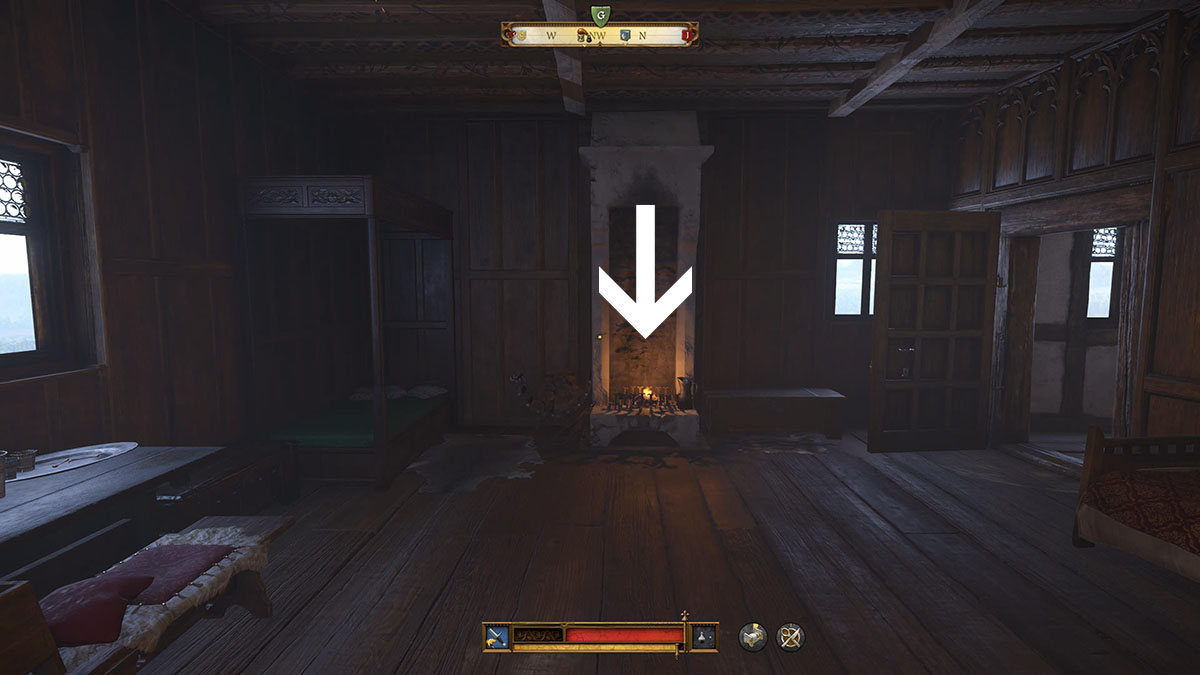城の乙女と膝の部分をつなぐノーザンブリッジに通じる部屋に入ることで、最初の輪状暖炉を見つけることができます。 2番目のものは、下の床のキッチンにあります。