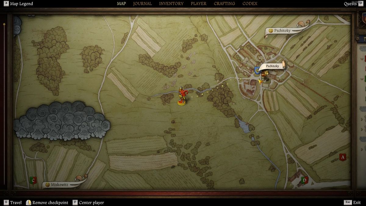 宝物を見つけるには、の町の間の畑に移動しますミスコウィッツそしてpschitoky。 Pschitokyから西になったら、オープンフィールドに通じる道を探します。この道を進むと、最終的には発見されます興味のあるポイント(POI)ラベル付き埋もれた隠し場所あなたの地図上。