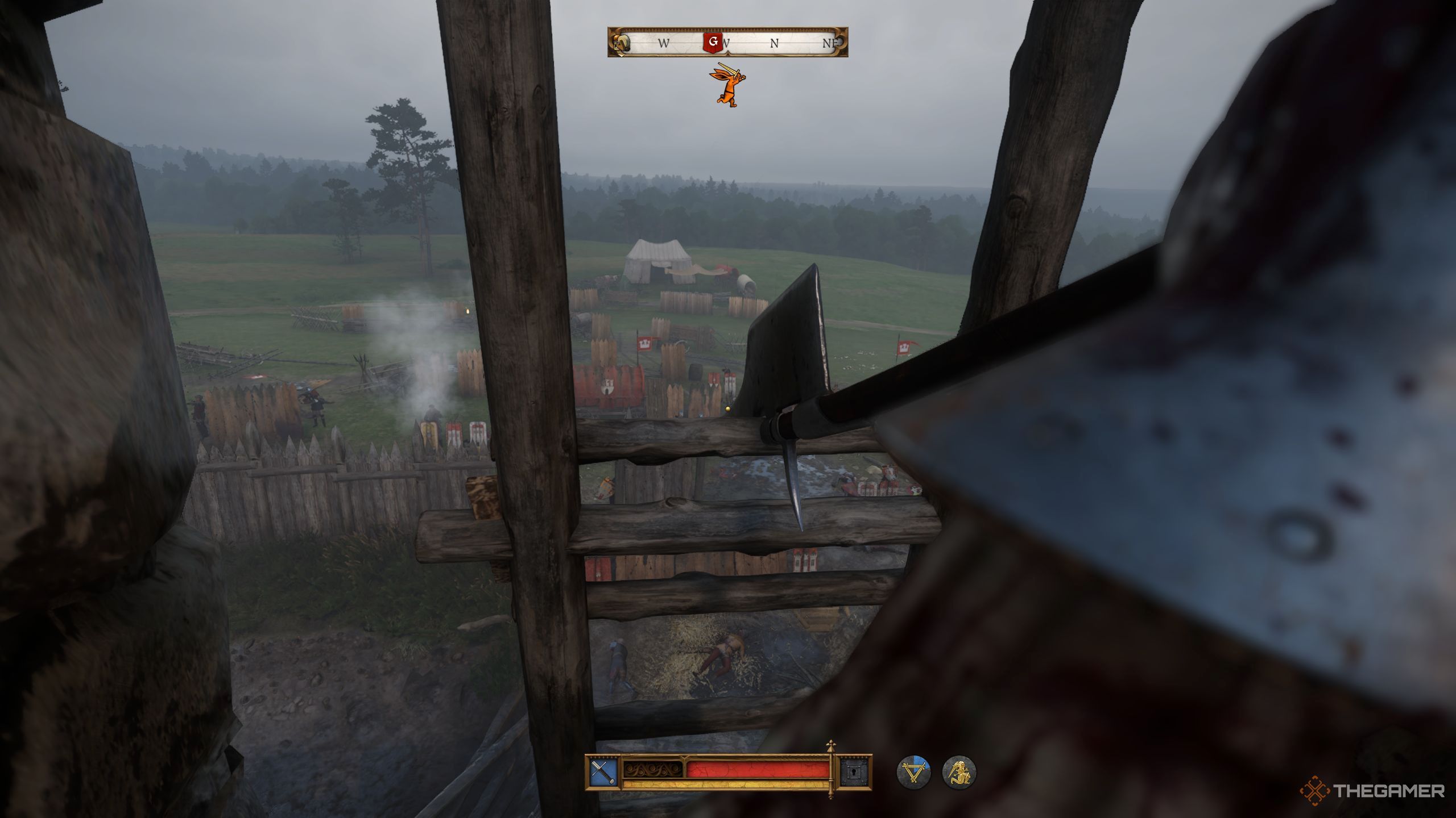 ゴッドウィンはすでに設備が整っています在庫を開く必要はありません。要塞が攻撃を受けているので、前の城壁に行き、敵を撃ち落とし、あなたがそれにいる間、はしごをノックダウンします。