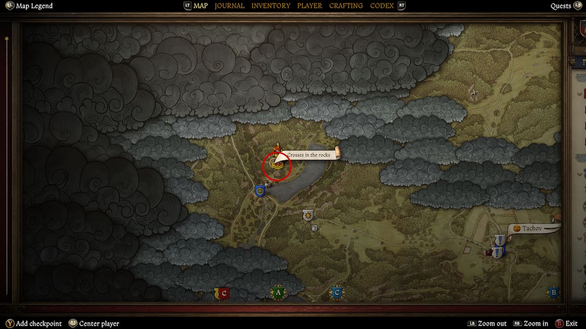 Rocks Digサイトのチャペルから2つのマップのセットを受け取ります。幸いなことに、最初のものはそれほど遠くなく、それほど遠くありませんトロスキー城の左Aの近くオオカミ狩りの場所。