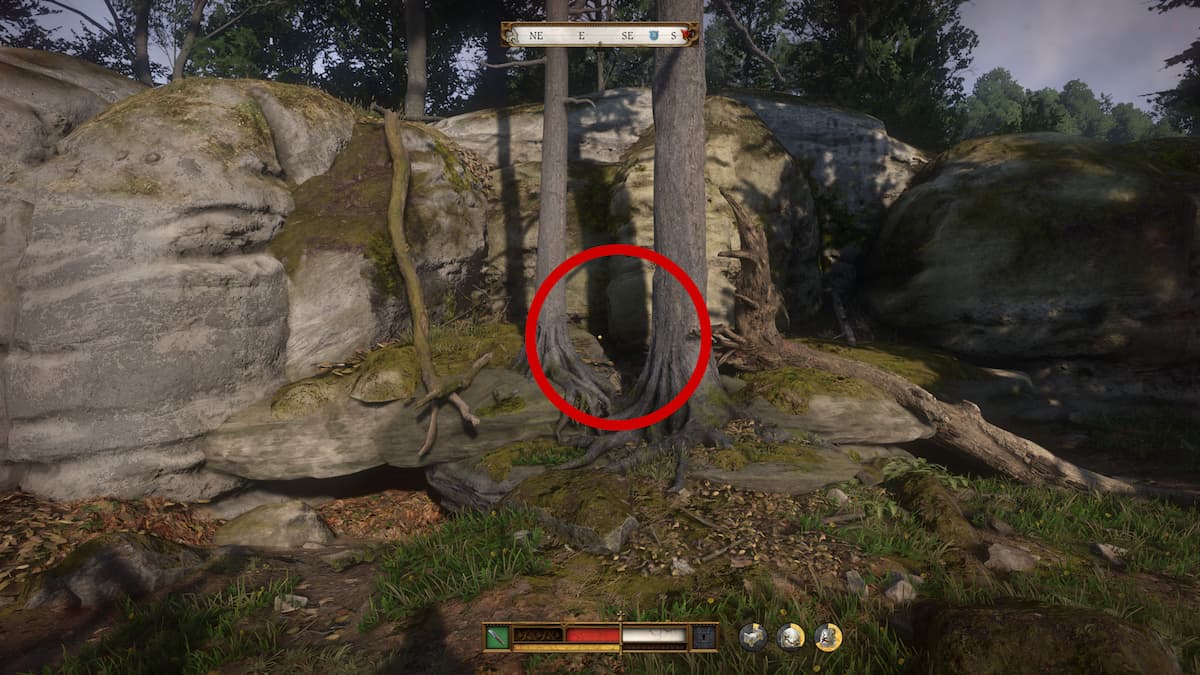 オオカミの狩猟スポットに近づいている間、戦いの準備をしてください。あなたが余分な手が必要な場合、Muttはここであなたを助けることができます。しかし、あなたがまだ彼を見つけていないなら、あなたは自分でそれらを取り除くことができます。彼らがあなたを攻撃し、パリーのためにそれらをブロックしようとするのを待って、あなたがそれらを打ち倒すことを可能にします。ただし、驚きの攻撃を避けるために、周囲の他の人を追跡することが重要です。他の人がどこにいるかを見ることができるように、彼らに近づきすぎないでください。それらが対処されたら、2つの巨大な木の間に行きます。